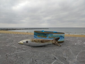 Sardina Ibiltaria” o “Sardina Andarina” es un proyecto creativo familiar. Mikel, Olatz y Ainhoa, los tres hermanos Aranburu, unen su creatividad y se complementan para dar vida a la pieza más popular y representativa de la tienda: una pequeña sardina de zinc reciclado dentro de una lata de conserva, acompañada de un cuento escrito en por Juncal Lertxundi e ilustrado por Ainhoa Aranburu.